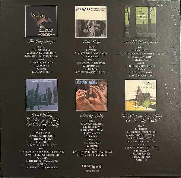 I’m borrowing ‘ancient axe’ from Ira Gitler’s liner notes to In a Minor Groove, a Dorothy Ashby album from 1958 that was reissued, along with other early Ashby albums, in New Land’s With Strings Attached boxset in 2023. I’ve been listening to those six albums a lot this year.